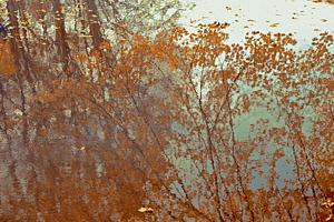 Ripples and reflections of leaves on water in fall. Taken at Moraine State Park in Butler PA