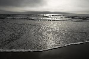 Black and white photograph of tide coming in on Outer Banks beach in Corolla North Carolina